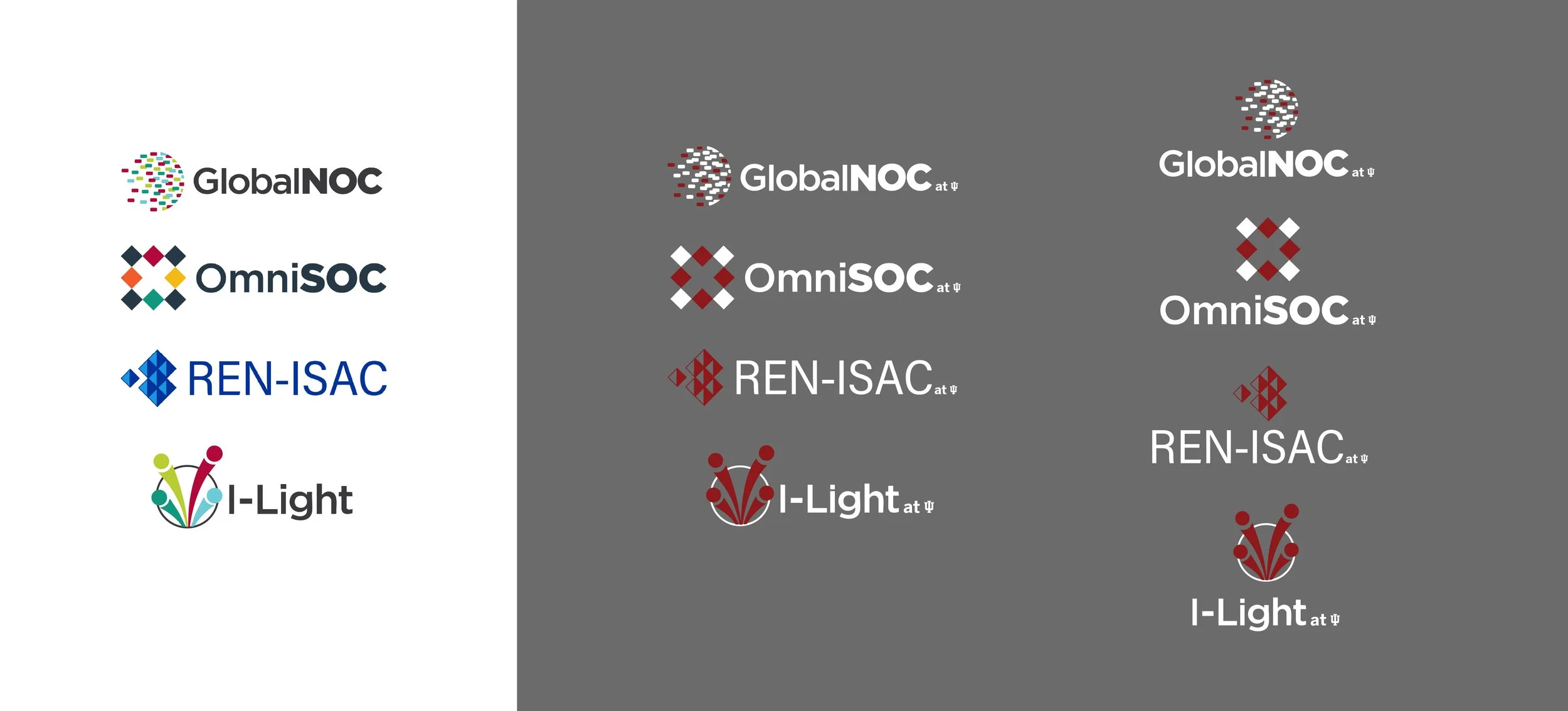 The image on the left displays various logos that require adaptation to align with IU branding standards. The image on the right presents my proposed solution.