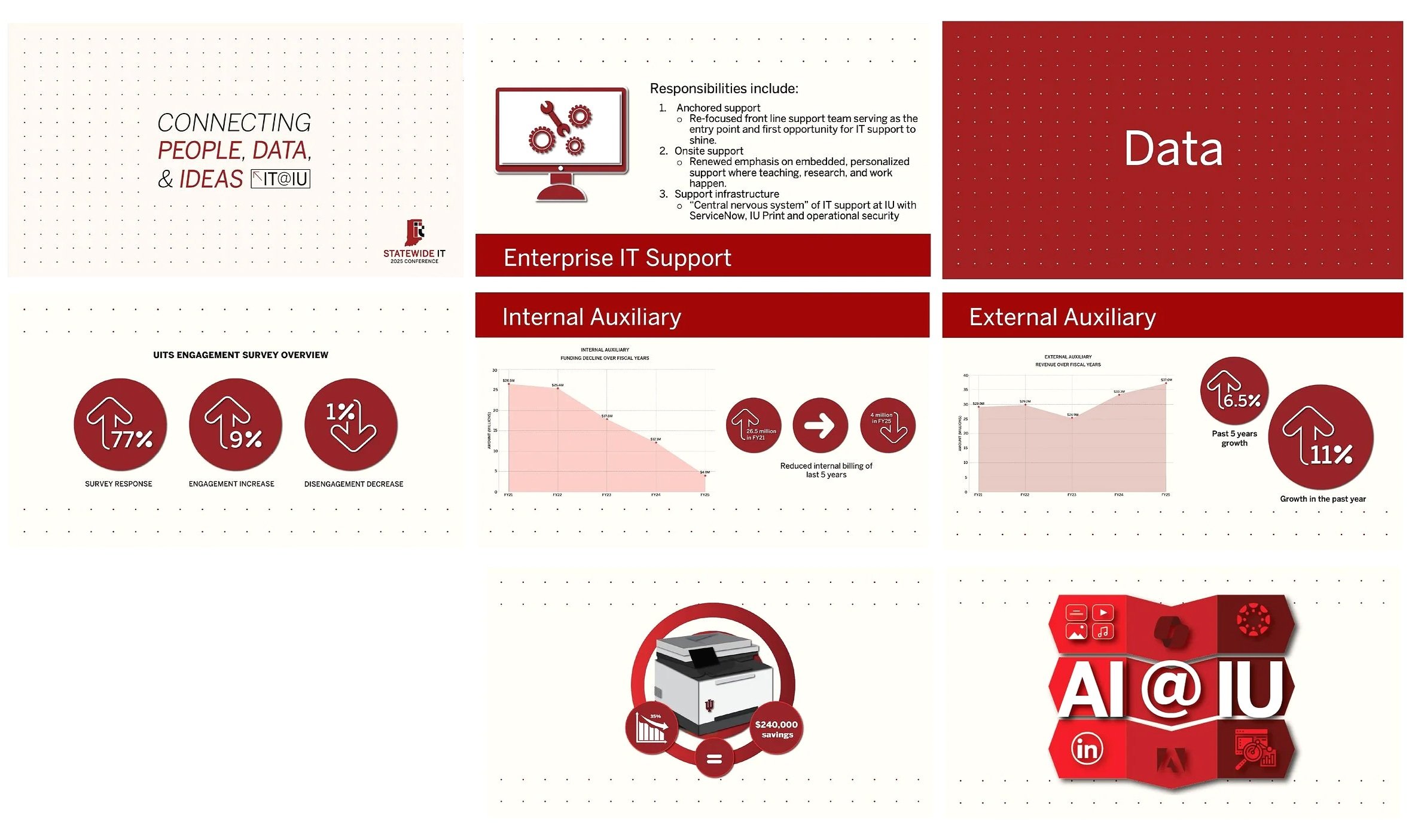 Indiana University annually hosts the Statewide IT Conference. In 2025, I developed the graphics and presentation materials, ensuring a cohesive design that adhered to brand guidelines. Click the link below to check it out.